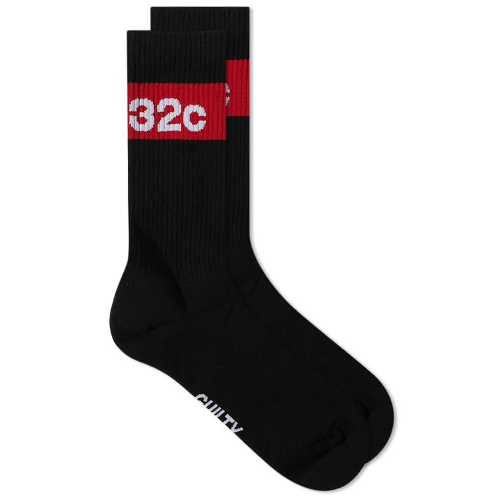 032c used to be an annual culture magazine that has grown into a full ready to wear clothing brand. These socks feature the brand’s iconic taping on the ankle, with the “guilty” logo under the foot, this features heavily throughout collections and collaborations and even homeware. The bold red taping contrasts against the black background and makes the brand visible no matter what.