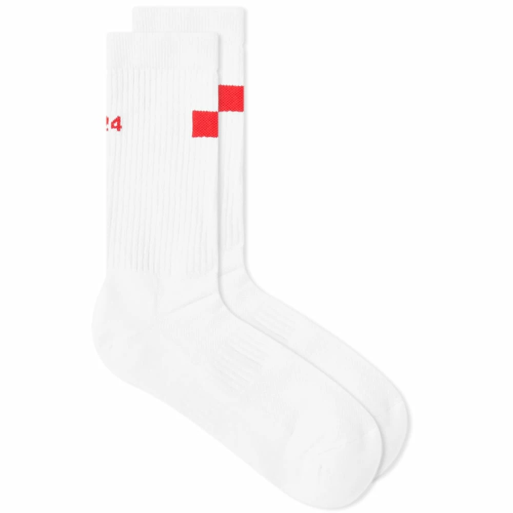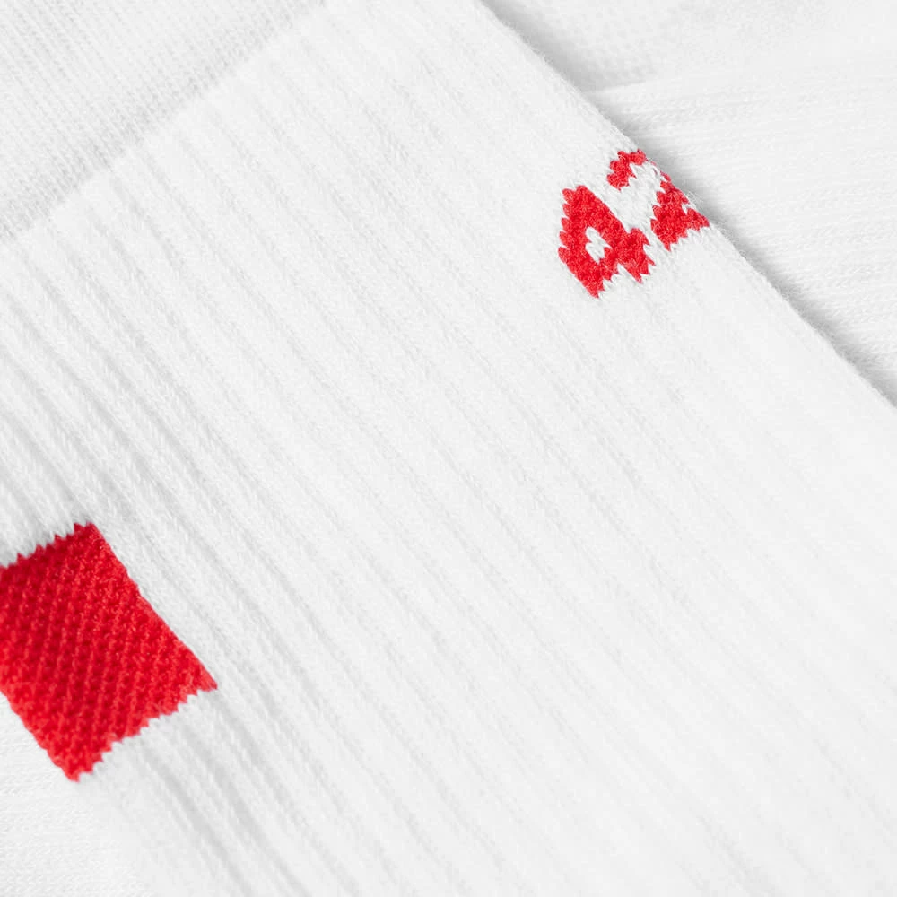 Give your streetwear ‘fits a sporty finish with these white socks from 424. They’re made from a stretchy cotton blend and feature a red stripe at the ankle accompanied by the label’s signature red branding.