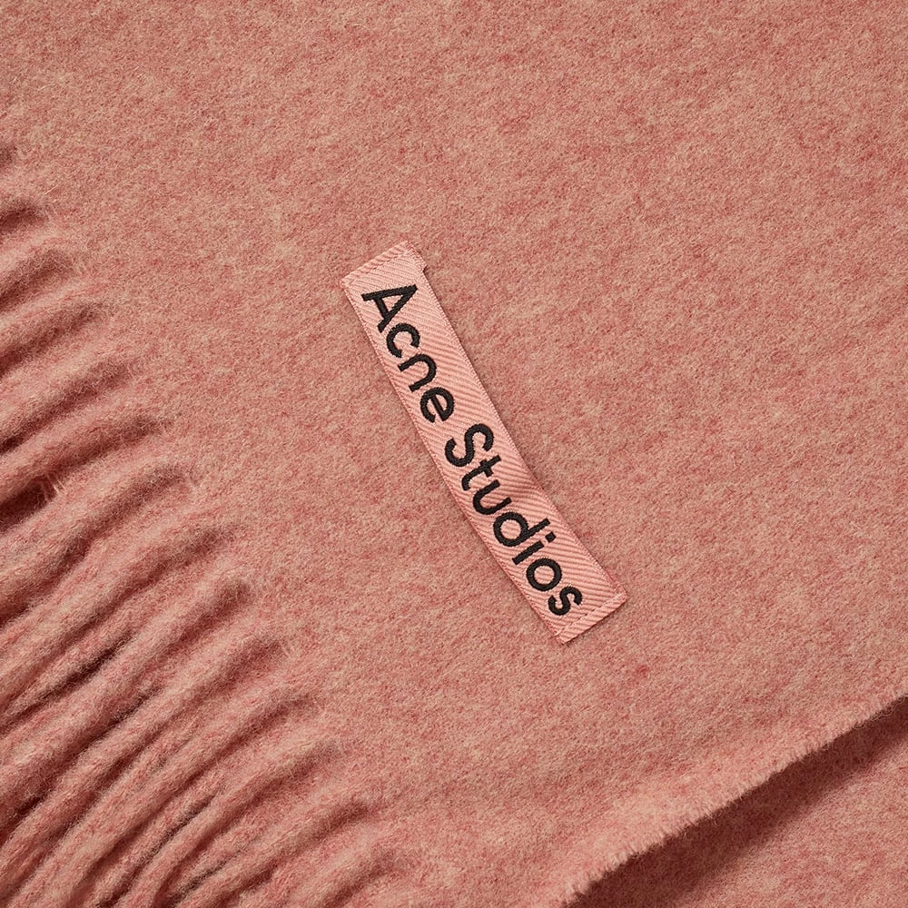 Acne Studios is a master at creating Scandi-cool minimalist designs- and this pink Canada scarf is proof. Made in Italy using pure wool, it shows off fringed edges and a small light pink brand tab completing the elegant look.