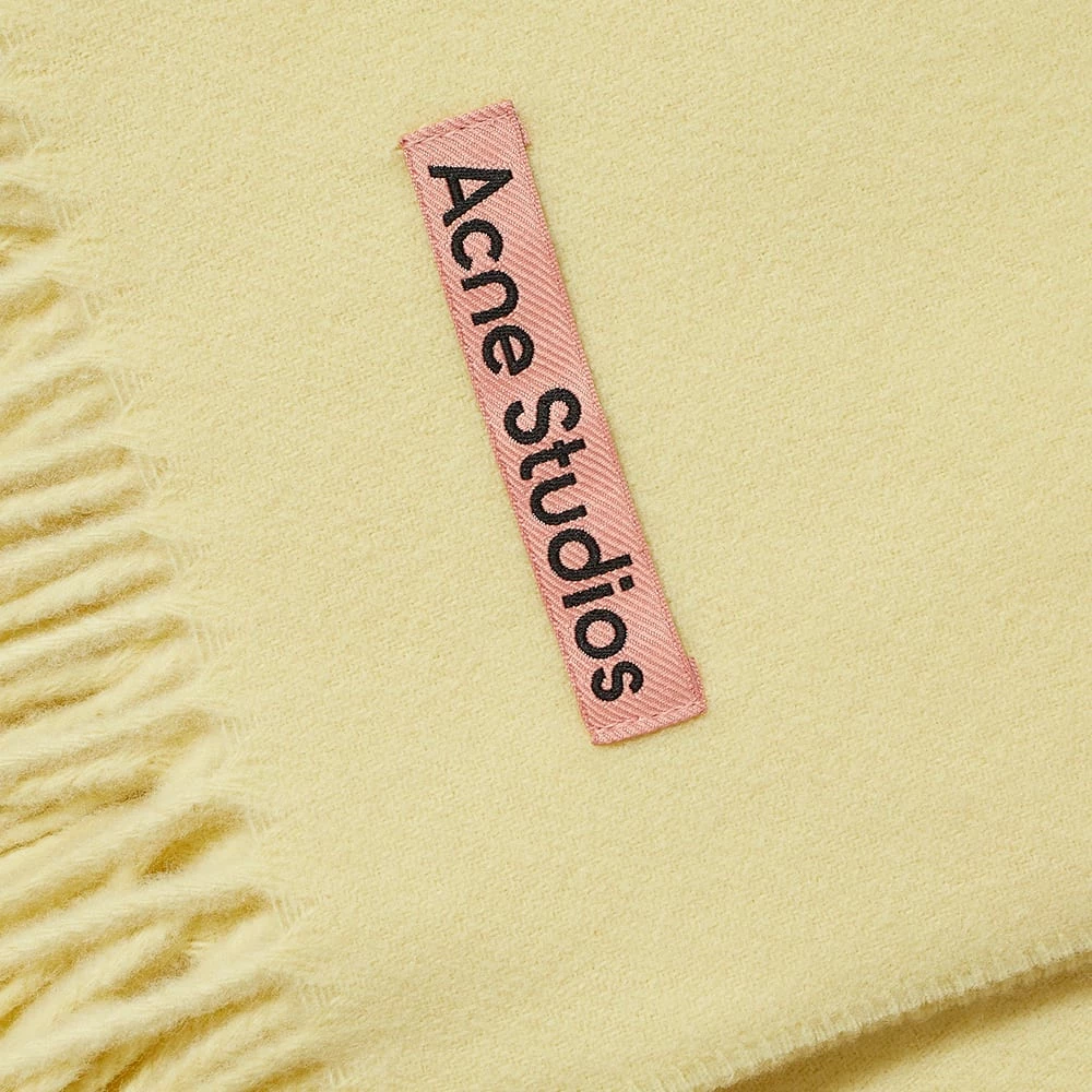 Acne Studios is a master at creating Scandi-cool minimalist designs- and this light yellow Canada scarf is proof. Made in Italy using pure wool, it shows off fringed edges and a small pink brand tab completing the elegant look.