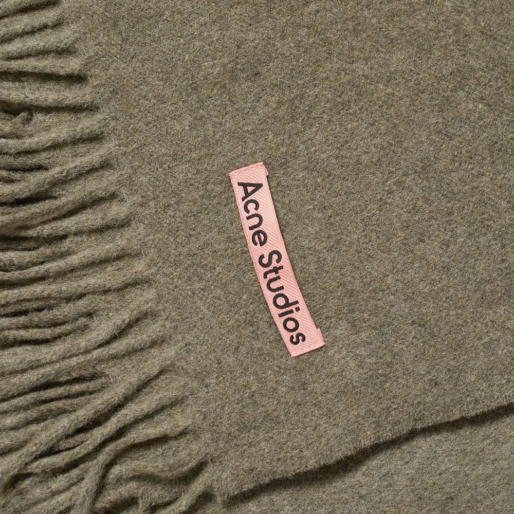 Acne Studios is a master at creating Scandi-cool minimalist designs- and this green Canada scarf is proof. Made in Italy using pure wool, it shows off fringed edges and a small pink brand tab completing the elegant look.
