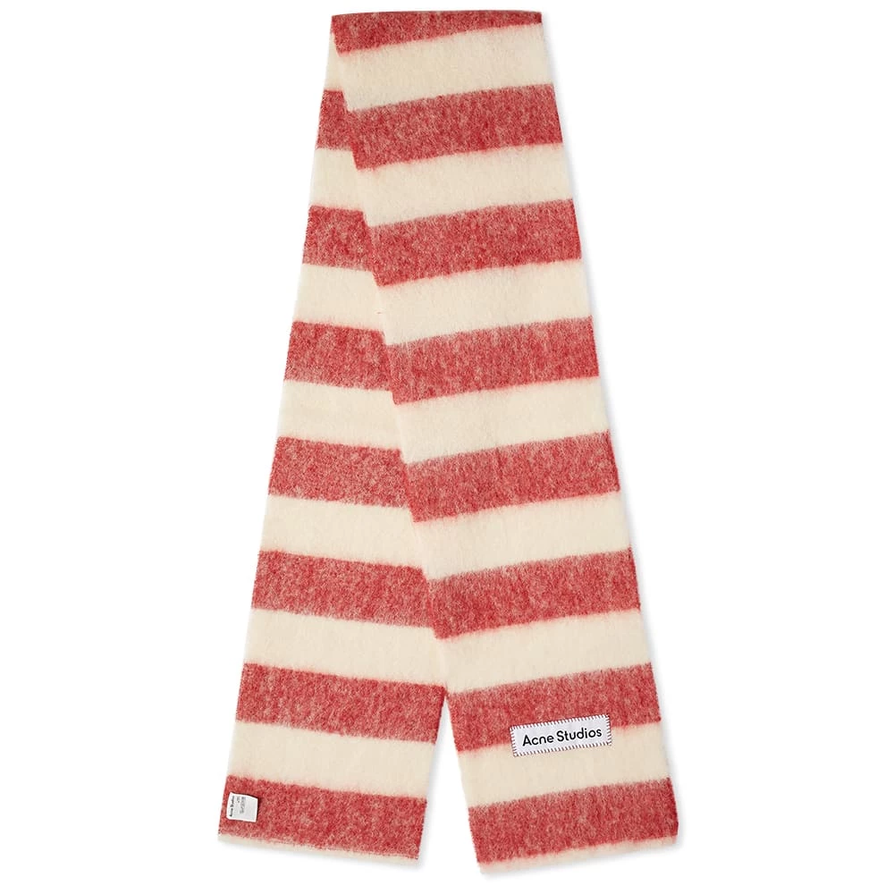 Acne Studios echoes its roots in creative collective ACNE – or “Ambition to Create Novel Expressions” – with this Vally Breton scarf. Part of the Stockholm-based brand’s ever popular line-up of accessories, this smooth scarf is characterised with a playfully vibrant stripe all-over, while an exaggerated Acne Studios logo ties everything together, making it an unmistakable addition to any outfit.