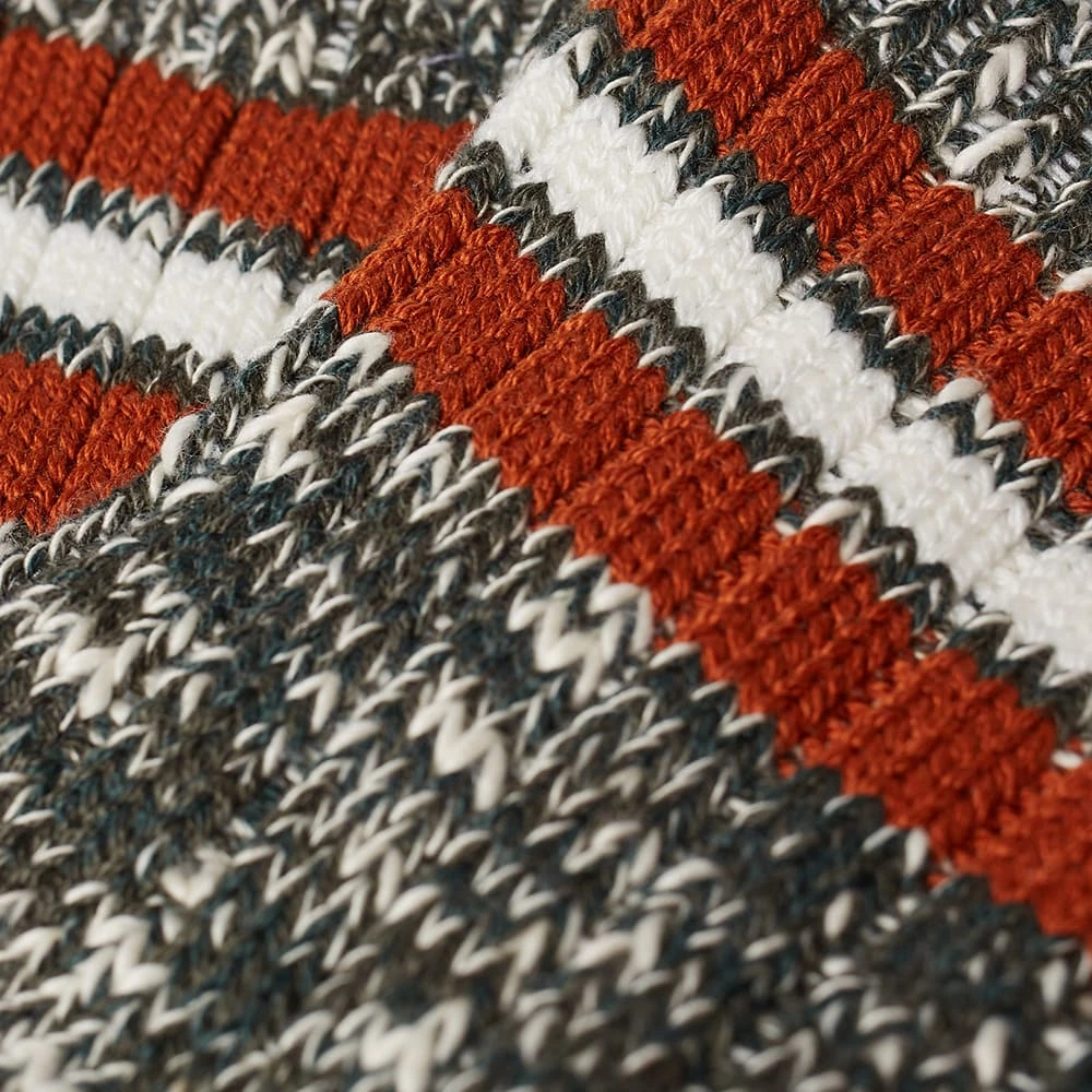 Japanese label Anonymous Ism creates some of the best socks around, using vintage machines to ensure a distinctive look and feel. These neutral beige ones are the perfect example. Their delicate melange build has three stripes – two grey, one yellow – at the cuff to provide a pop of colour from under your favourite turned-up jeans.