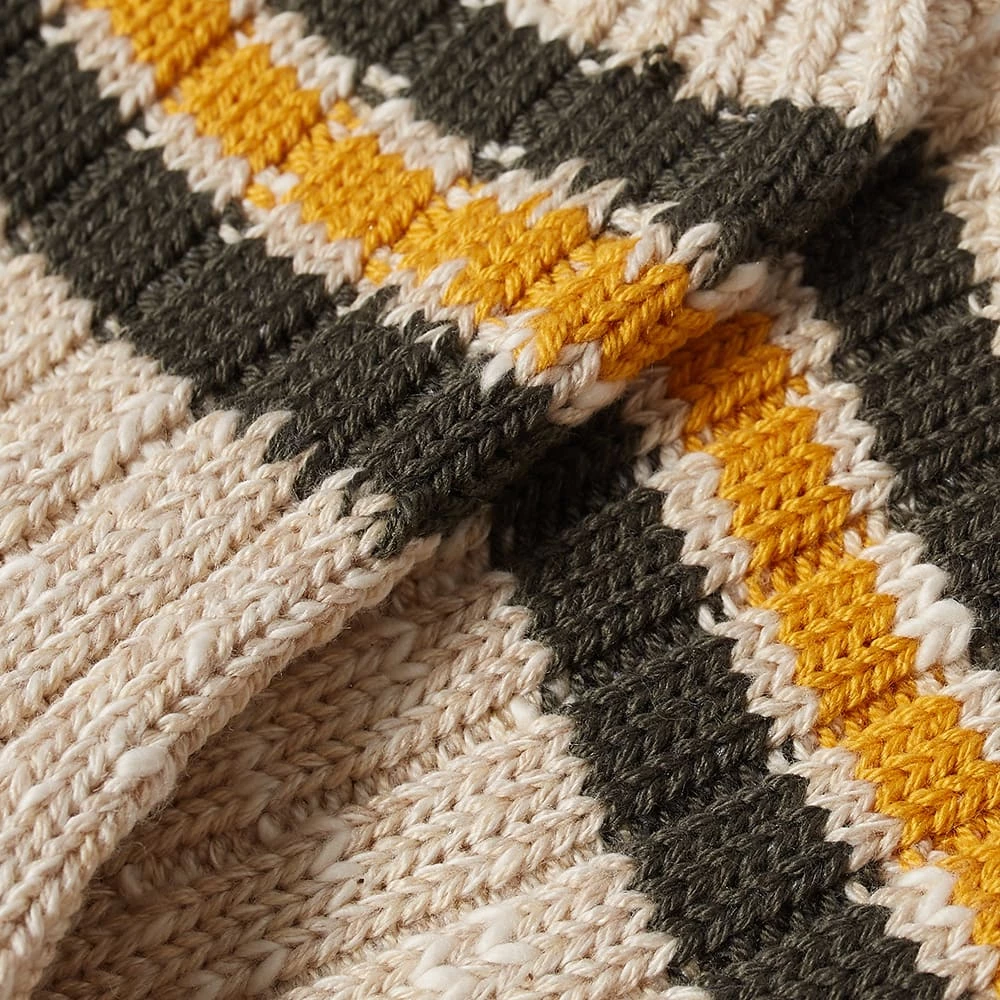 Japanese label Anonymous Ism creates some of the best socks around, using vintage machines to ensure a distinctive look and feel. These neutral beige ones are the perfect example. Their delicate melange build has three stripes – two grey, one yellow – at the cuff to provide a pop of colour from under your favourite turned-up jeans.