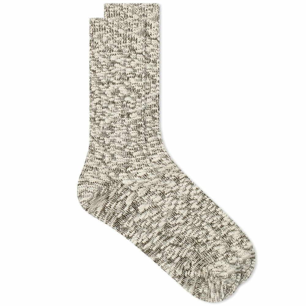 Delivering style and comfort in equal measures, Anonymous Ism’s Slub Crew sock remains a firm fan favourite. Reworked this season in a lightweight cotton mix, this olive green marl pair is perfect for shifting seasons.