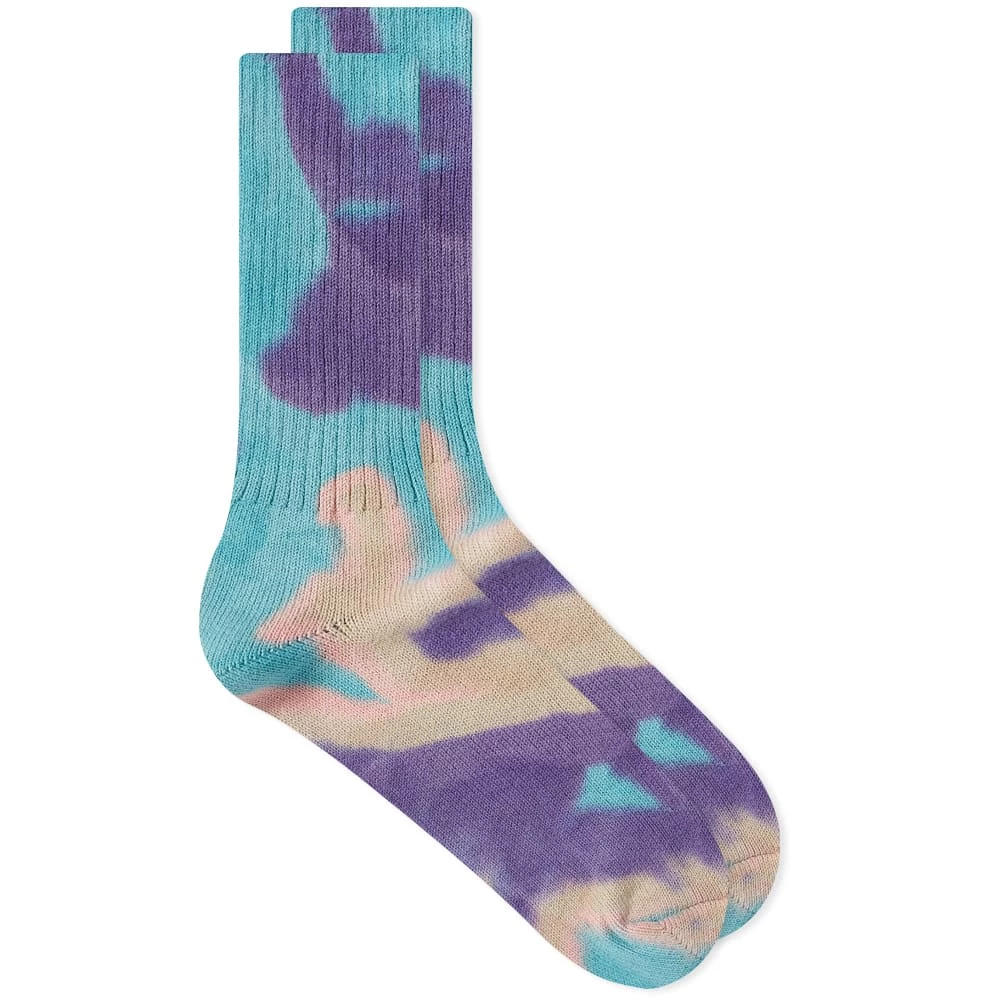 Make footwear the focal point courtesy of Anonymous Ism. Cotton rich, these navy blue socks are tie dyed to achieve their kaleidoscopic finish and styled with ribbed cuffs for a snug fit.