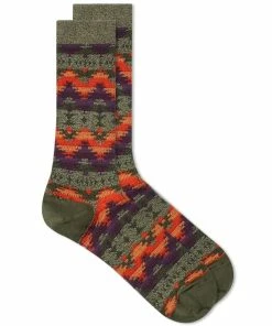 These Anonymous Ism socks feature a khaki, orange and purple jacquard in a zig-zag formation that takes inspiration from traditional Native American patterns. They’re expertly crafted in Japan from a comfortable cotton mix that keeps them resilient and ready to up your position in the style stakes.