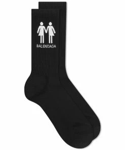 Spanish fashion house Balenciaga partners with OutRight to create the 2022 Pride collection in order to support the LGBTQ+ community. The Pride tennis socks designed by Demna Gvasalia features the collections symbol printed on the sides.