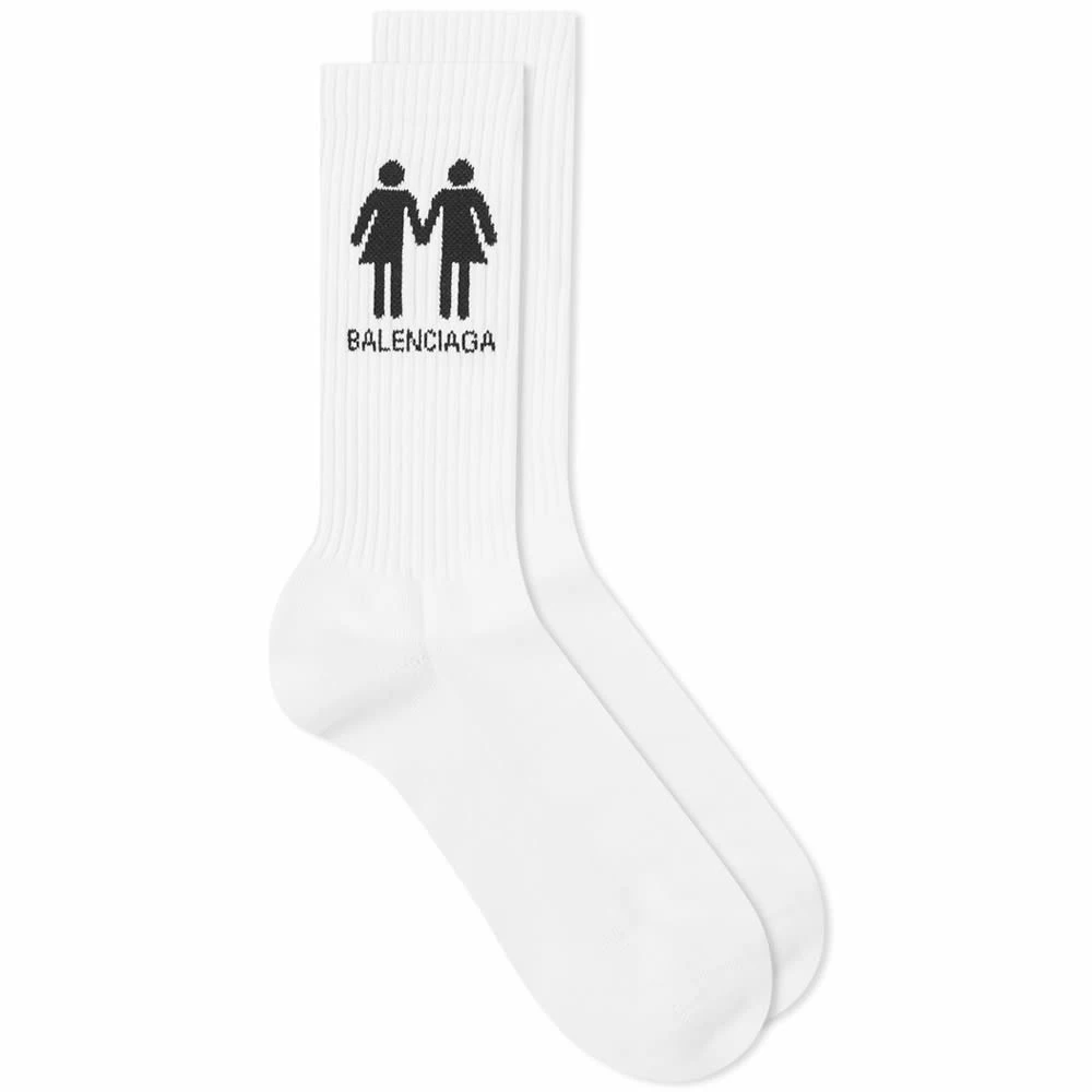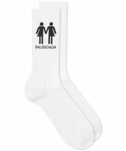 Spanish fashion house Balenciaga partners with OutRight to create the 2022 Pride collection in order to support the LGBTQ+ community. The Pride tennis socks designed by Demna Gvasalia features the collections symbol printed on the sides.
