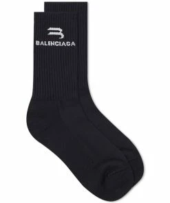 Complement your favourite sneakers with these Balenciaga socks, crafted from a black cotton-rich mix and detailed with contrast branding on the cuffs. Their ribbed design and engineered toes will provide all-day comfort.