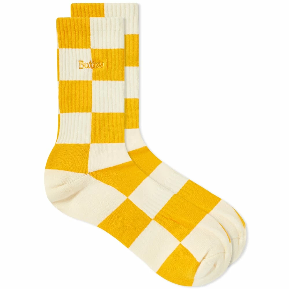 Elevate your essentials with a helping hand from Butter Goods and these playful teal check socks. They’re signed off with the signature golden Butter logo at the hem, for added skate-style to pop above your favourite sneakers.