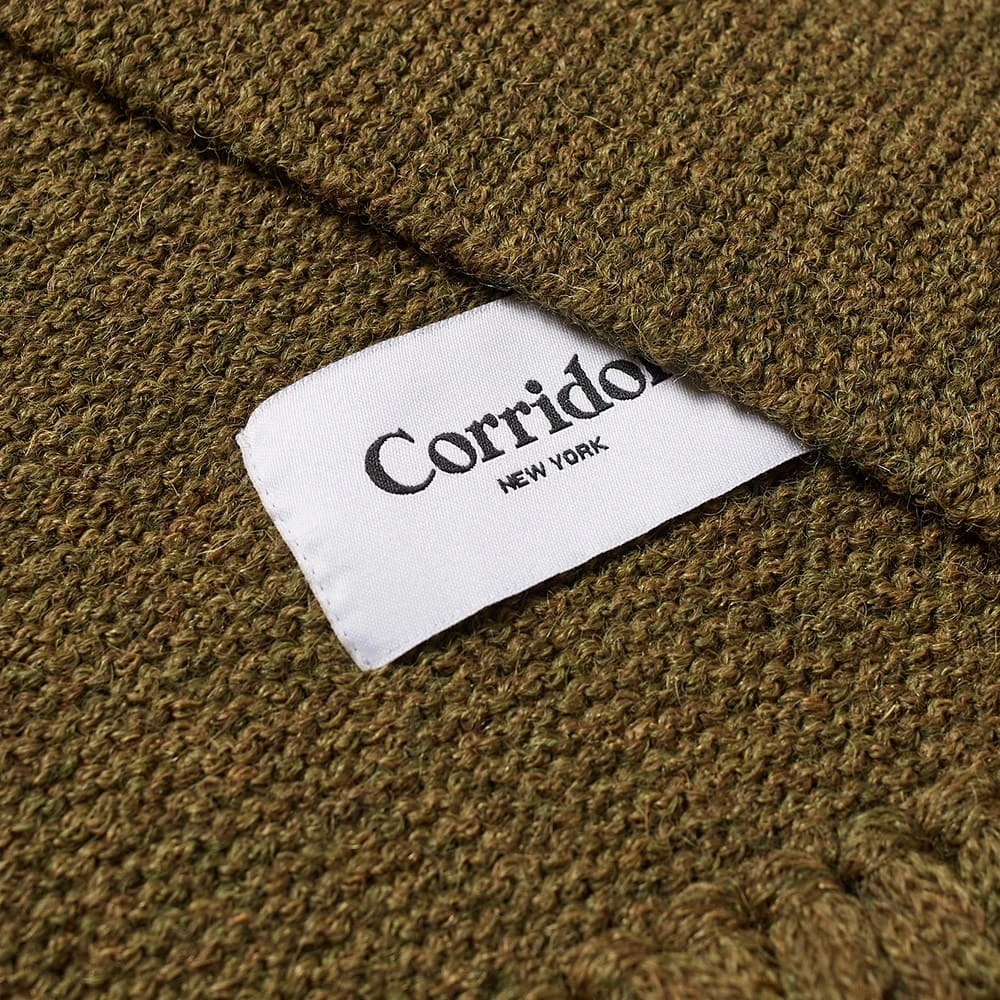 Since its humble beginnings in 2013, Corridor has earned a cult following for its contemporary, city-centric clothing and accessories – like this army green scarf. With quality fabrication a continuing brand focus, it’s woven in Peru from super-soft alpaca-wool, then minimally styled with a fringed trim at both ends.
