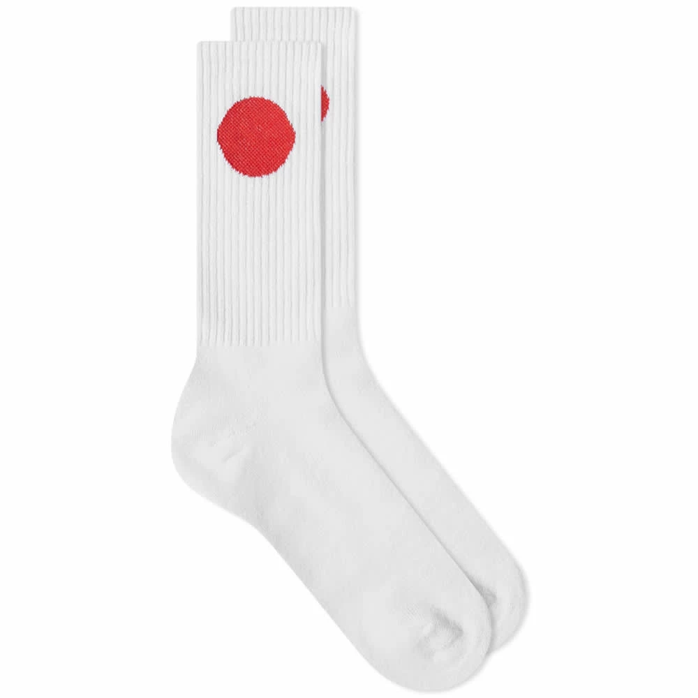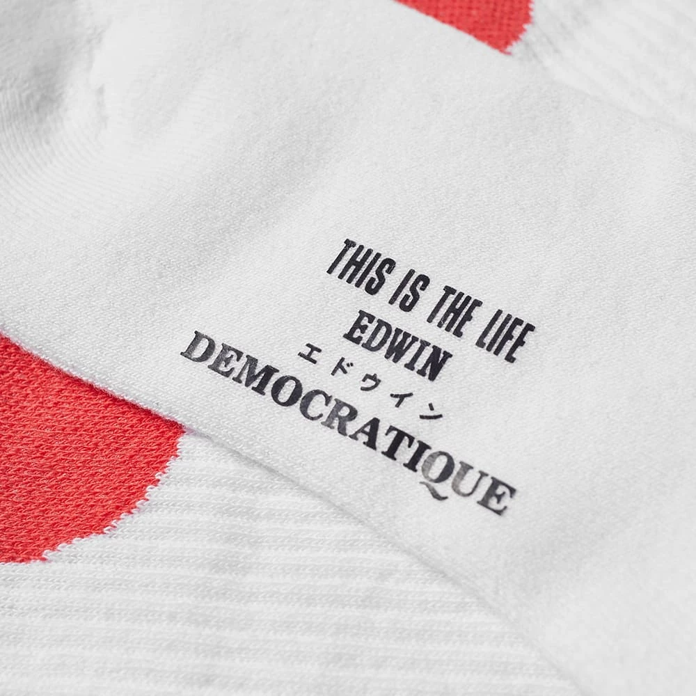 EDWIN joins forces with the sock experts at Democratique to deliver these cosy crisp white socks. They’re crafted from a soft and stretchy cotton blend and feature ribbed trims for maximum comfort, whilst red engineered branding signs off the look.
