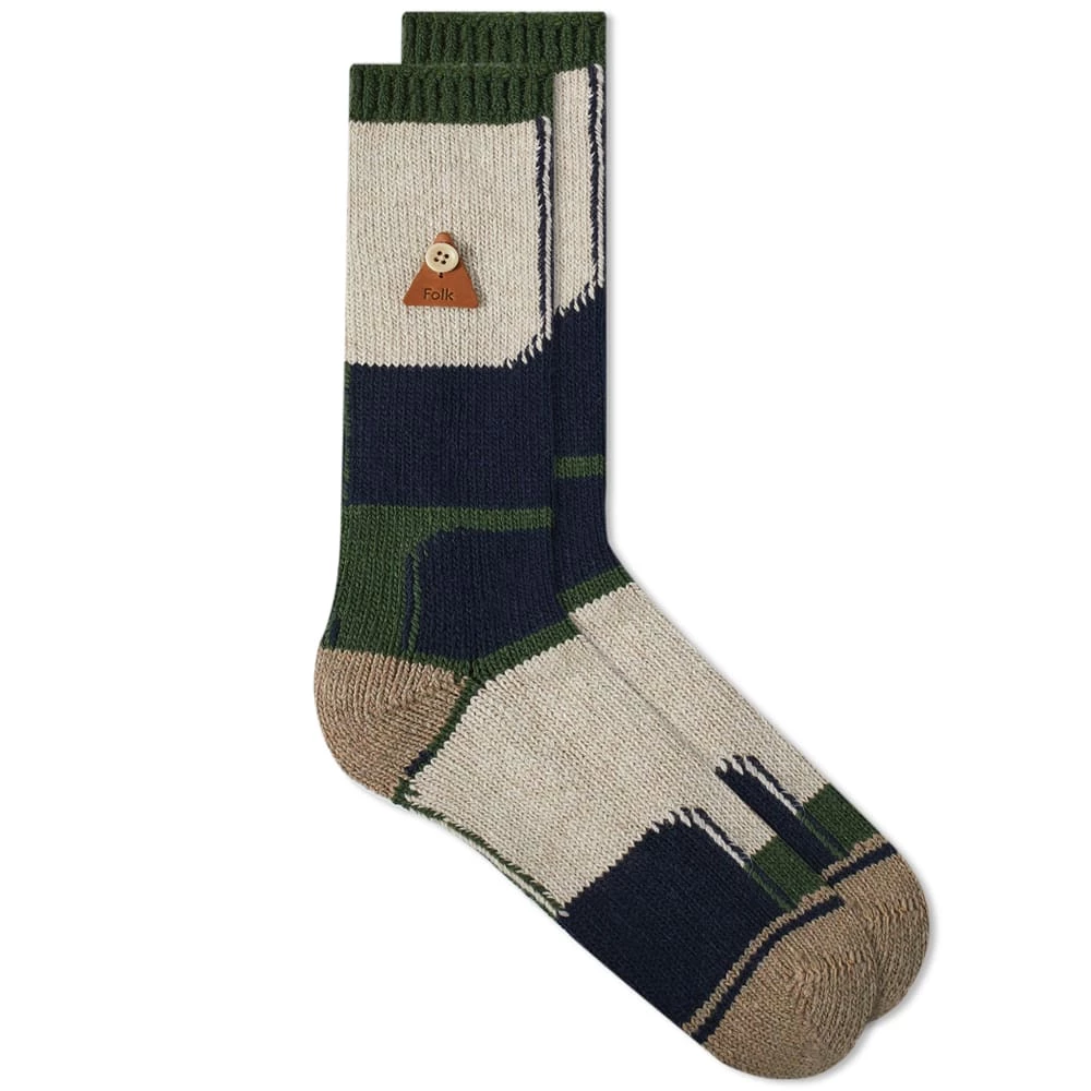 Enriched by subtle details, these Curve socks epitomise everything Folk is renowned for: style without drama. They’re woven prom a soft wool mix and showcase a unique, seasonal pattern throughout. A branded faux-leather patch finishes them off.