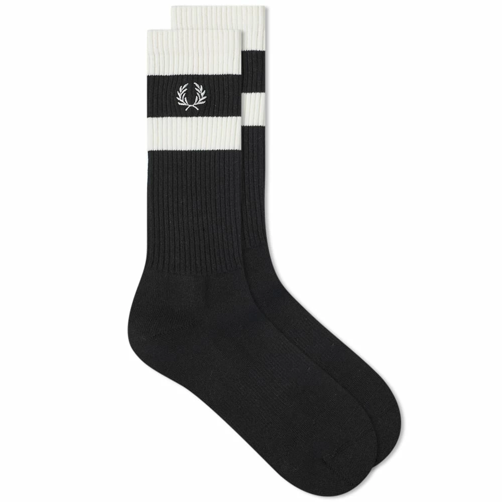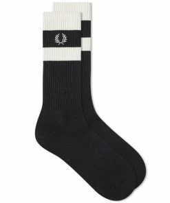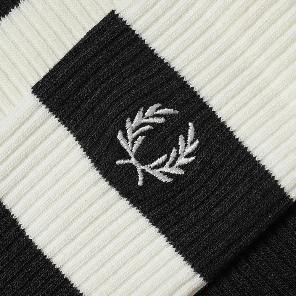 Level-up your everyday sock collection with this pair from Fred Perry’s. In black, they’re cut from a comfy cotton blend and detailed with the tennis style’s two signature accents: twin-tipped trims and an embroidered laurel wreath.