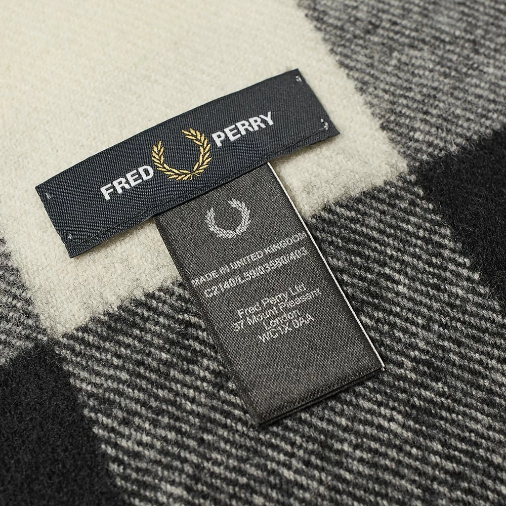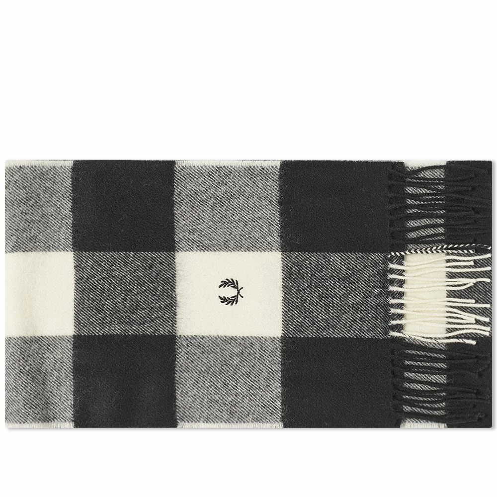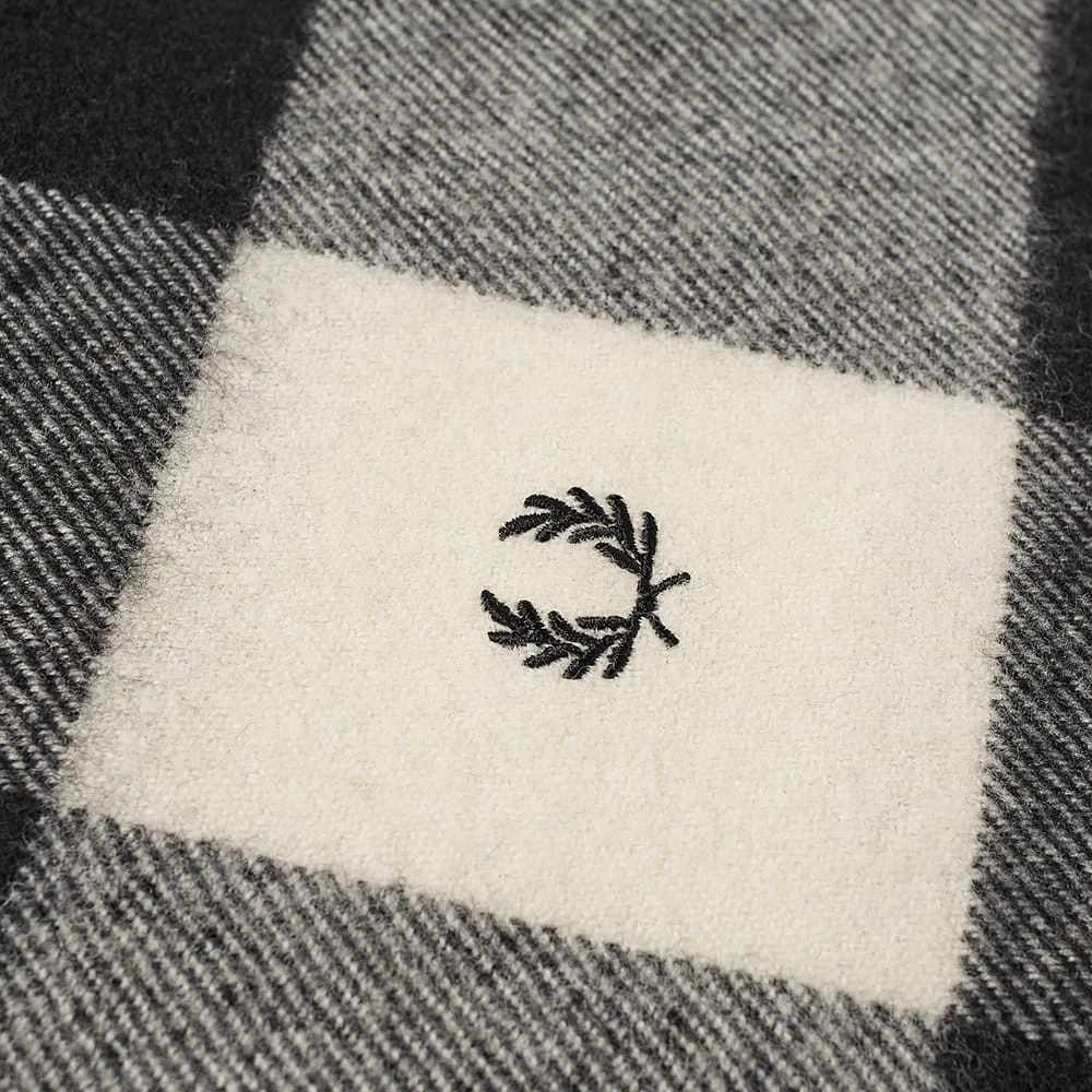 Awarded to Fred Perry by the Wimbledon All England Club after winning three years in a row, the Laurel Wreath is a symbol of success and victory. Now the British label’s brand mark, it is embroidered to this gingham lambswool scarf.