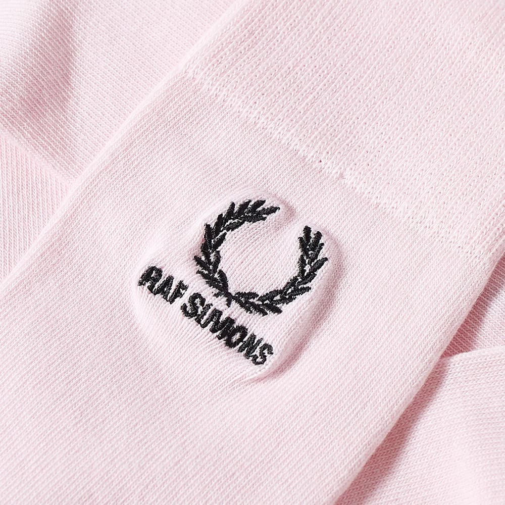 As part of their latest collaboration Raf Simons reinterprets familiar Fred Perry shapes with the sensibilities of his eponymous line. A collection of sport meets punk garments these pink cotton socks feature the signature laurel wreath embroidery alongside Raf Simons branding.