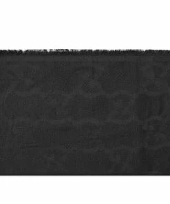 This black scarf from Gucci is an opulent addition to your accessory rotation. It’s crafted in Italy from a wool-silk blend – for a luxuriously soft feel – and adorned with the fashion houses’ signature GG monogram pattern, then detailed with tonal fringed trims.