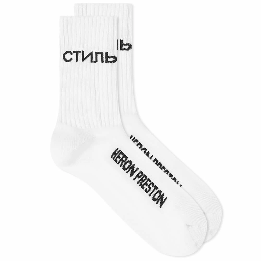 Featuring Heron Preston’s signature ‘СТИЛЬ’ logo, meaning style in Russian, these white long socks epitomise the brand’s drive for impeccable design. They’re made from positively conscious yarn and guarantee to make a statement.