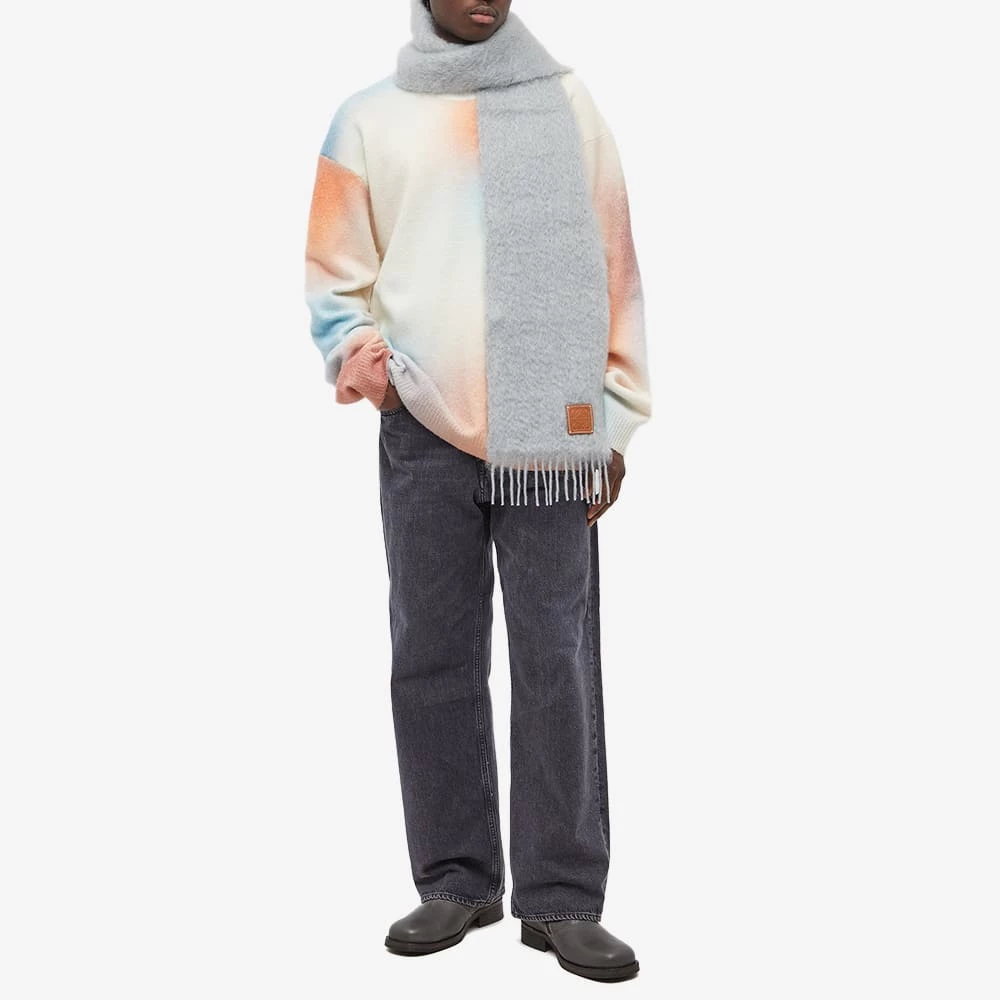 Wrap up in style with this grey scarf from Spanish label Loewe. It’s made from a super-soft mohair and wool blend, finished with tassel detailing and a discreet leather patch in tan, showcasing the brand’s iconic anagram.