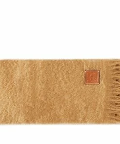 Elevate your winter essentials with a helping hand from Loewe and this timeless, camel-coloured mohair scarf. Crafted from a luxurious wool and mohair blend, it features soft fringed ends – one of which features an embossed leather brand patch.