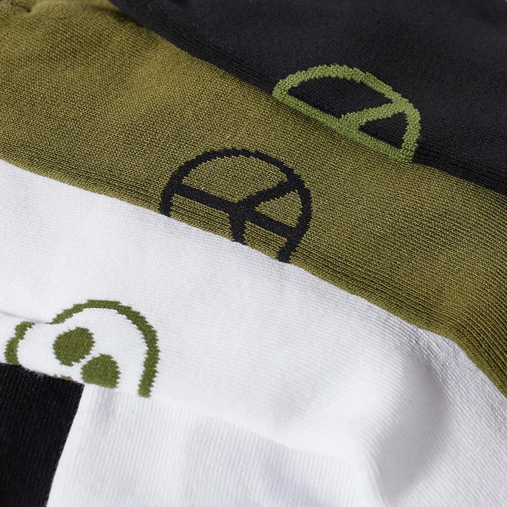 Made in Portugal from a combed cotton mix, Maharishi’s socks are designed to provide light and breathable comfort throughout the day. Packed in a set of three, they’re detailed with the brand’s signature MILTYPE logo and peace sign engineered into their crisp white, black and olive build.