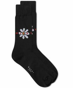 Marni delivers a fun and playful aesthetic to your sock collection with this black pair. Crafted from a super-soft cotton blend, they’re styled with ribbed cuffs – for optimum comfort – and feature engineered branding, too.
