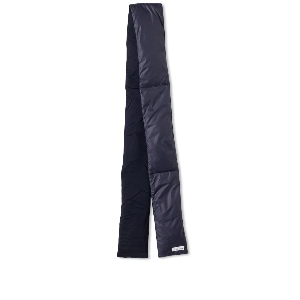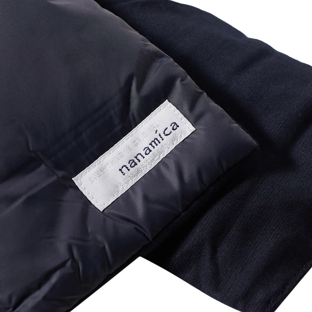 Soft cotton and KODENSHI® Japanese feather down technology meet to form this navy muffler scarf from the pioneers of fashion-meets-adventurewear nanamica. With a signature subtle woven brand patch stitched on at one side, fasten with the press stud closure to lock out the chill.