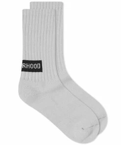 Neighborhood keeps it stylish and uncomplicated with these grey socks. Tall and ribbed, they have block logos at the ankle for a touch of streetwear authenticity.