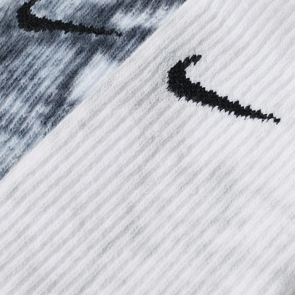 Elevate your sneaker game with Nike’s crew socks, tie dyed in psychedelic shades of light and dark green. Crafted with innovative Dri-FIT technology, they wick sweat away from the skin, making them stylish and practical in equal measure.