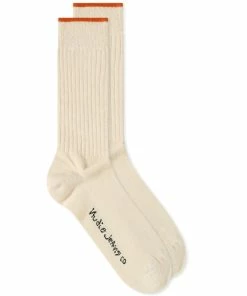 Nudie is celebrated for its dedication to denim and sustainable fabrics. But its other creations, including these Gunnarsson socks, deserve equal applause too. With an orange cuff around the ankle, spot the branding at the sole.