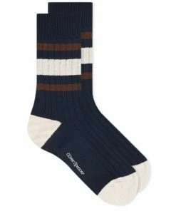 London brand Oliver Spencer is quietly confident, with easy-to-wear staples that are distinguished by unexpected details and carefully curated fabrics. A nod to classic varsity styles, these Polperro ribbed socks add a sporty element to any casual outfit, woven in a soft cotton with contrast striped ankles.