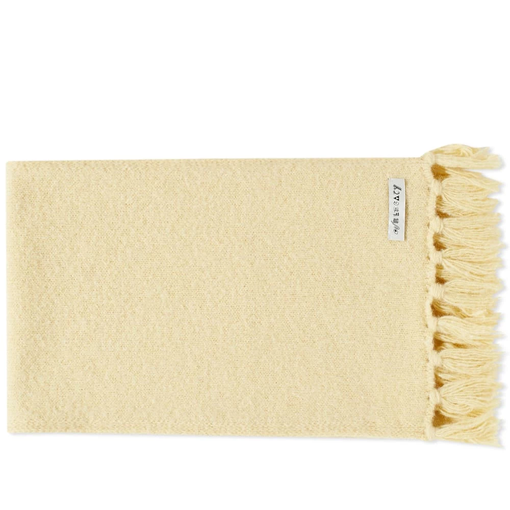 Our Legacy is renowned for its quality-craftsmanship and attention to detail, showcased with this canary yellow scarf. It’s woven from a luxurious wool-silk, complete with tied fringed ends.