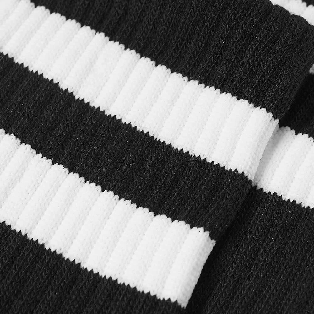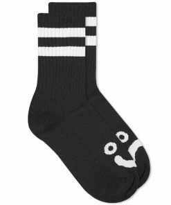 Malmö-based brand Polar Skate Co. proves socks don’t have to be a boring affair, decorating this black pair with happy and sad faces at the toes. The construction and contrasting ringer stripes, though, provide comfort and give a nod to traditional athletic styles.