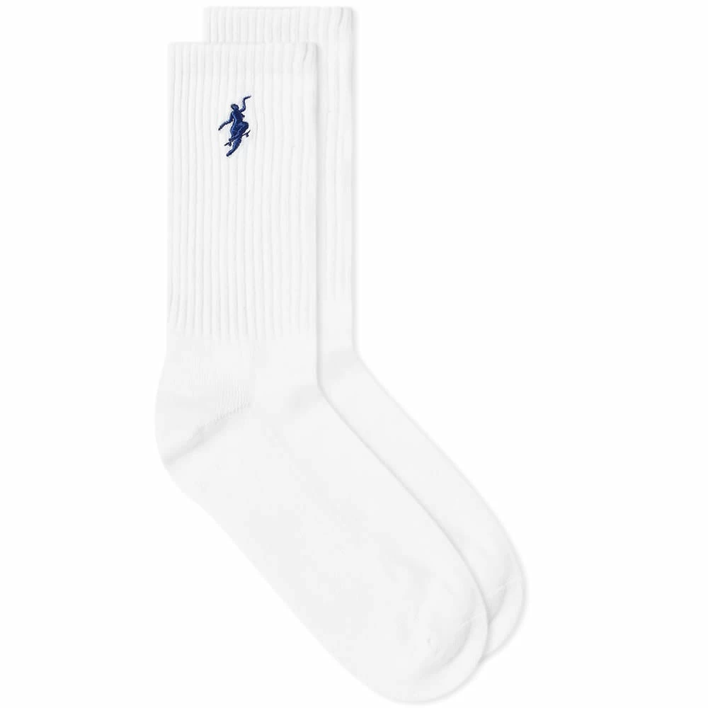 Channel the creative energies of Polar Skate Co. with these No Comply socks. Perfect for roaming round the city on deck, these are made from a ribbed cotton-blend with an airborne skater embroidered at the ankle.