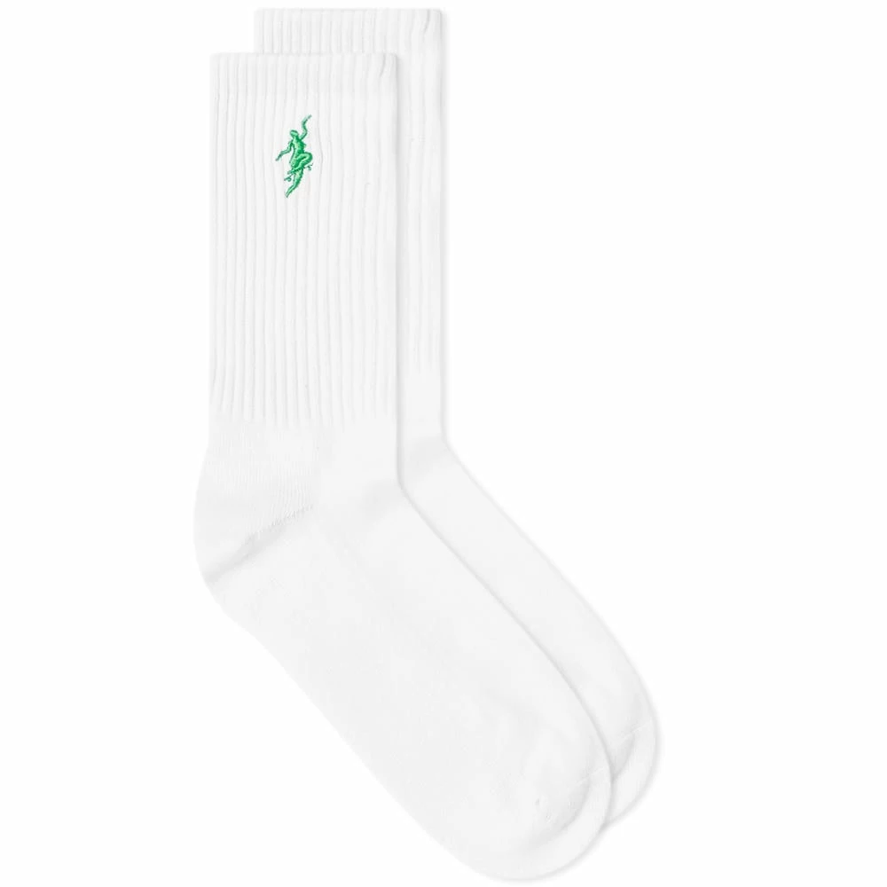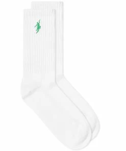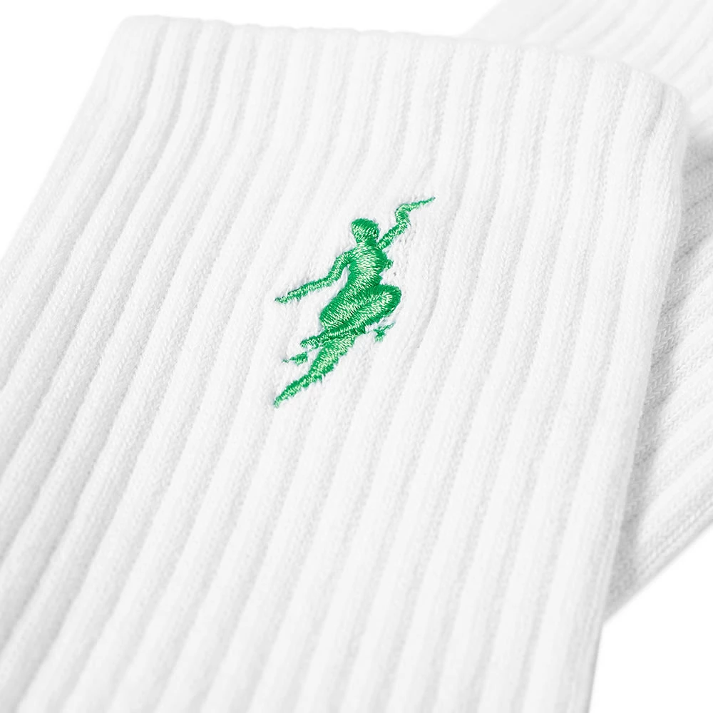 Complete your skate attire with these white socks from Polar Skate Co.. Crafted from a breathable poly-cotton blend, they feature ribbed trims for a snug fit and are detailed at the ankle with the brand’s seasonal ‘no comply’ graphic, embroidered in green.