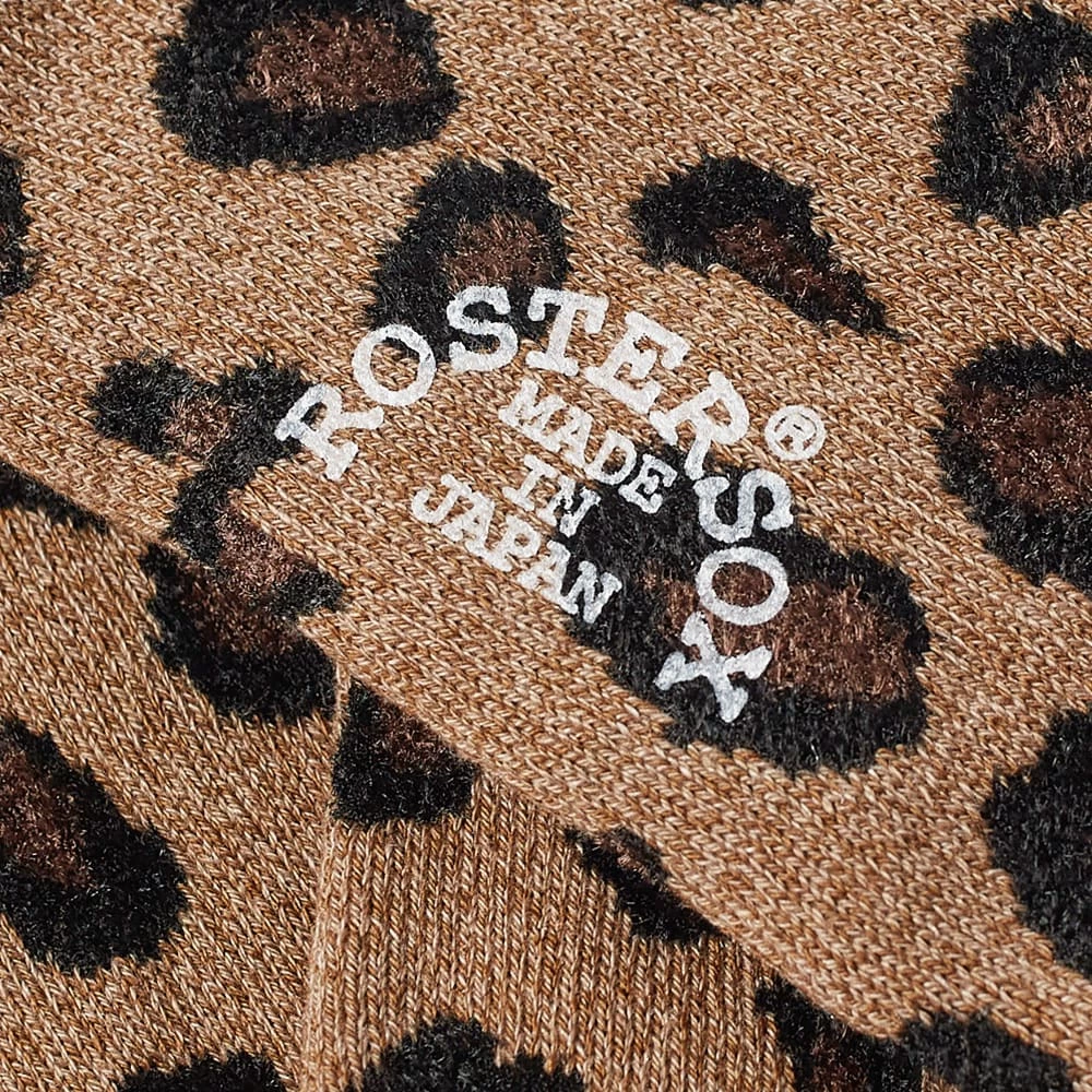 With a considered playfulness, Japanese label Rostersox encourages you to walk on the wild side with these brown animal print socks. Inspired by vintage americana with a utilitarian edge, they’re woven from soft cotton and feature a contrast leopard print engineered throughout.