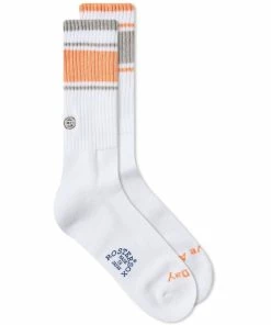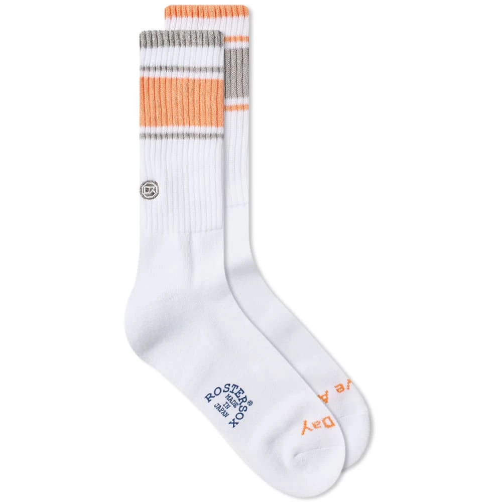 The perfect blend of classic and playful, these ROS socks from Rostersox are crafted from a soft and stretchy cotton-blend for ultimate all day comfort. Fitted with classic ribbed cuffs, the pair are styled with grey and orange details, while the words ‘Have a’ & ‘Nice Day’ sit on the toes for a lighthearted finish.