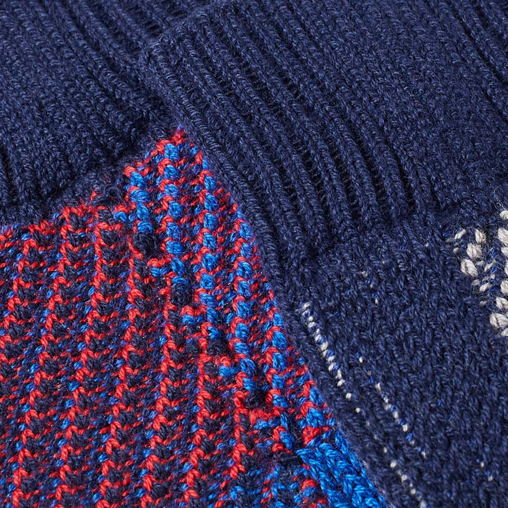 A brand known for reinterpretations of traditional patterns, Sacai presents the check sock. Featuring a patchwork pattern of navy colours, these socks are an innovative way to make a classic.
