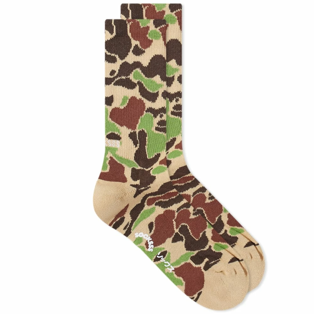 Give your sock collection a bold update with this pair from Stockholm-based SOCKSSS. Made in Portugal from a soft organic cotton blend, they’re detailed with earthy-toned camo print and tonal branding at the heel.