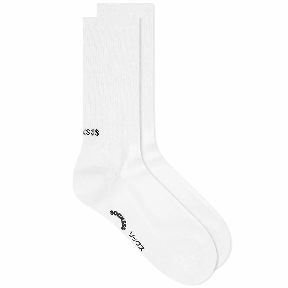 Keep it simple with these snow white tennis SOCKSSS. They’re made from a comfortable organic cotton mix and have ribbed cuffs to keep them put through each and every match. Signed off with the Stockholm-based label’s name engineered at the heel, they’re subtle enough that they’ll look ace away from the court, too.