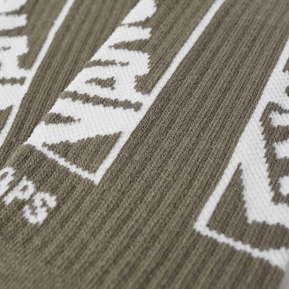 Vans Vault creates sneakers inspired by the 40 years of designs. It offers up collections based on the intersection of fashion, art and music. Collaborating with WTAPS to follow the brand’s Japanese streetwear label that features military-infused pieces. The WTAPS crew sock features both brand’s logos engineered into this sports sock.