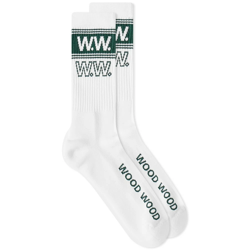 Established in 2002, Wood Wood’s continued drive to create timeless styles is evident with these logo sports socks. They’re woven from soft cotton-blend with chunky ribbed cuffs and feature bold green ‘WW’ brading wrapped around the ankle.