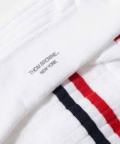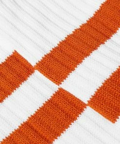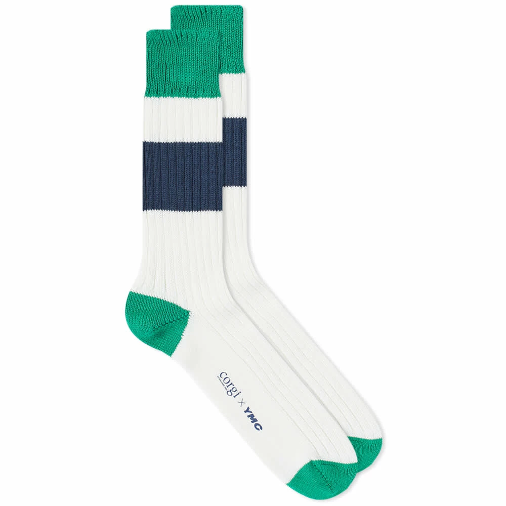 Crafted from a soft cotton blend for optimal comfort, these off white socks from YMC feature contrasting green colour stripes on the toe, heel and cuff. Finished with embroidered branding on the sole.